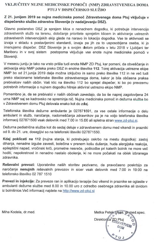Vključitev nujne medicinske pomoči (NMP) Zdravstvenega doma Ptuj v dispečersko službo