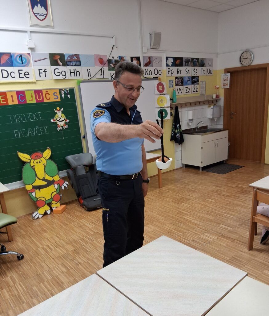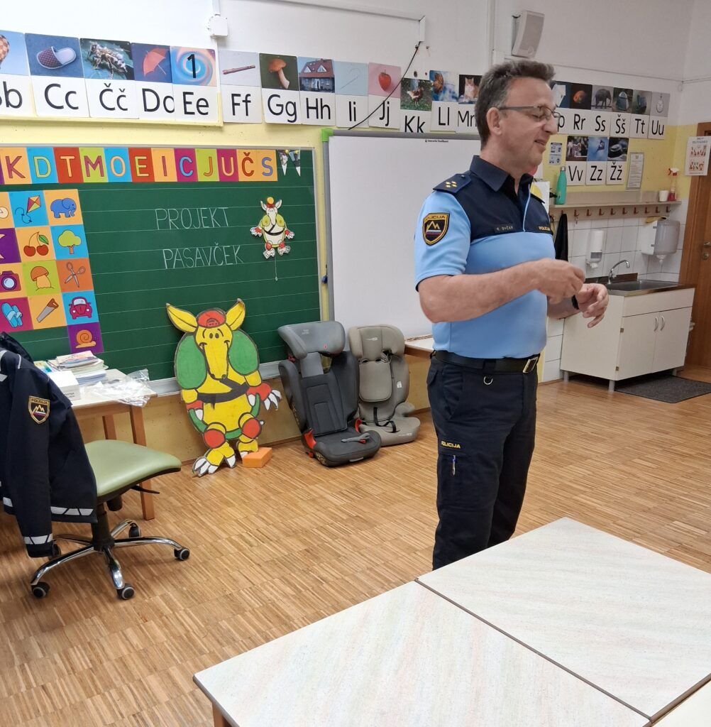 Hvala gospodu policistu Robertu Ovčarju za obisk in poučne nasvete! Ne pozabimo: Red je vedno pas pripet!