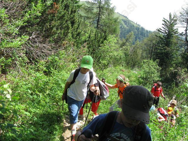 Najprej, tako za ogrevanje, nas je naša planinska vodila do Koče na Loki. Bili smo deležni prijaznega sprejema oskrbnika. Ogledali smo si naše »bodoče domovanje«, pomalicali, odložili odvečno prtljago in se odpravili do Male Raduhe in do Velike Raduhe. Hoja v vročem dnevu je zahtevala kar nekaj počitkov, šele ob prehodu na višje lege se je zaradi vzgonskega vetra nekoliko ohladilo pa tudi motivacija za dosego dvatisočaka je prispevala, da smo družno in navdušeno dosegli vrh.