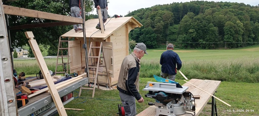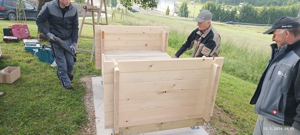 Čebelnjak je bil postavljen v ponedeljek, 13. maja 2024. Na slikah Marjana Mezgeca pa si lahko ogledate kako je potekala postavitev naše pridobitve.