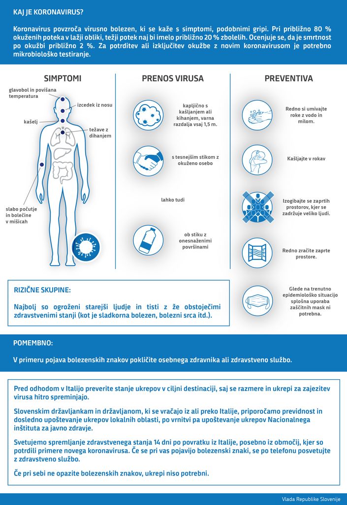 - Informacije o novem koronavirusu so zbrane na portalu državne uprave GOV.SI na naslednji povezavi.