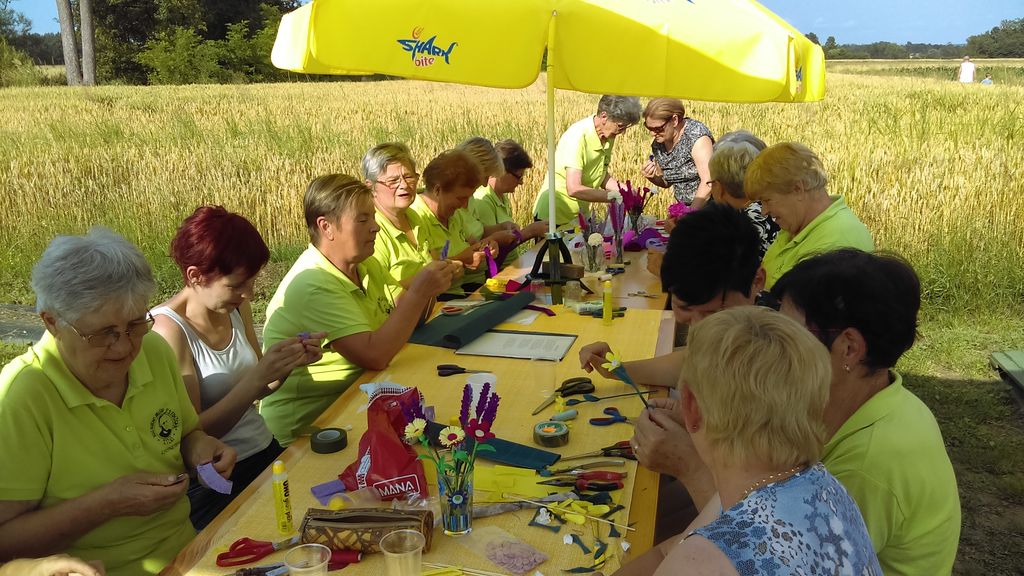 V petek, 21.6. 2019, smo se pevke družile na polju sivke, kjer smo izdelovale cvetje iz krep papirja in vmes tudi kakšno zapele, domačo ljudsko seveda. Bilo je prijetno druženje, ustvarjalno in kreativno skupaj s sovaščani vasi Žižki .