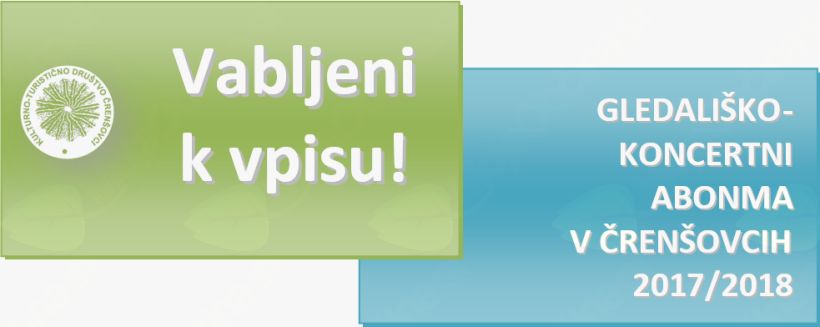 Kulturno-turistično društvo Črenšovci tudi letos ob podpori Občine Črenšovci organizira Gledališko-koncertni abonma, ki ponuja predvsem priložnost, da jesenske in zimske večere preživimo v kvalitetni gledališki ali koncertni družbi umetnikov. Vabimo Vas, da z nami v kulturni dvorani v Črenšovcih preživite 6 kulturnih večerov.