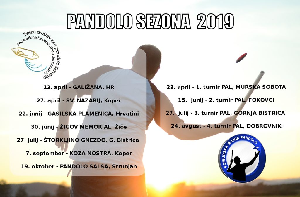 Na uvodnem turnirju sezone za državno prvenstvo 2019, ki se je 13. aprila kot tradicionalno odvijala na jugu istrskega polotoka v Galižani (HR), je prepričljivo zmagala ekipa Mazza la Panda, torej ekipa, ki je osvojila lansko državno prvenstvo in oktobra zmagala na zadnjem turnirju v Strunjanu. Reprezentanca MŠD Prekmurski pandolaši ni nastopila in je svoje prve letošnje točke iskala na tradicionalnem 27. turnirju Sv. Nazarija v Rakitovcu, kjer smo tekmovali z dvema ekipama.