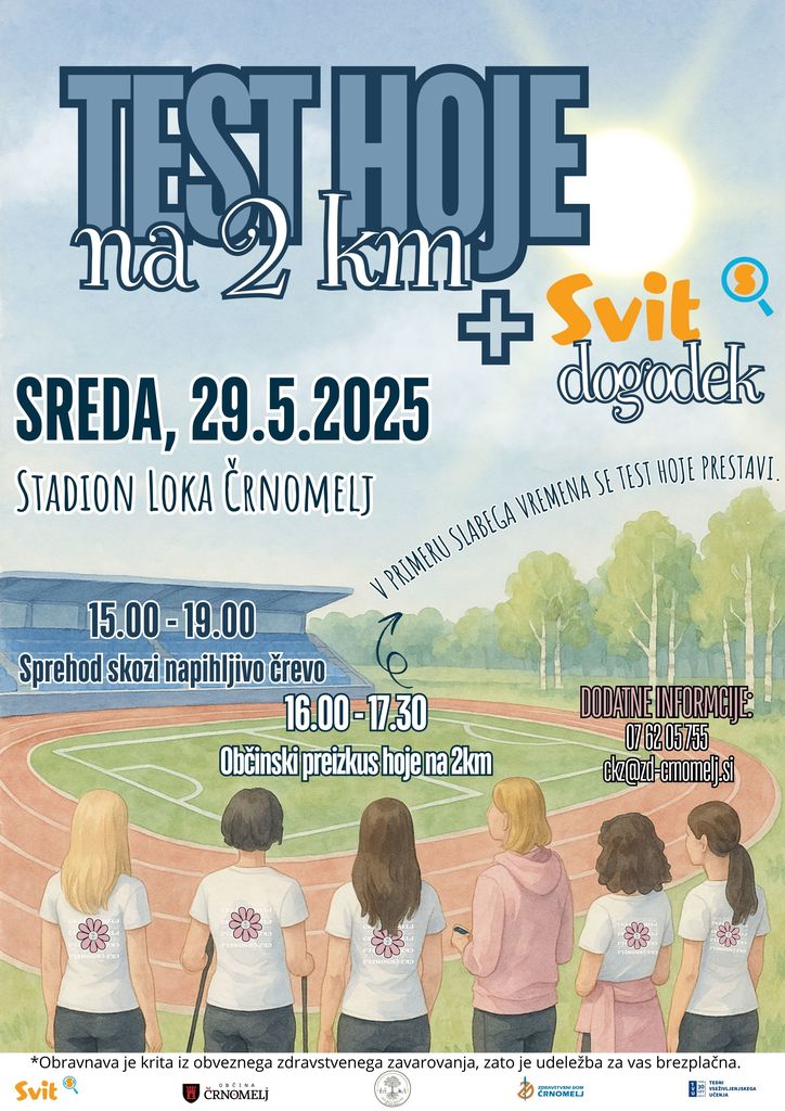 Lepo vabljeni na občinski Test hoje na 2 km, ki bo potekal v četrtek, 29. 5. 2025, med 16.00 in 17:30, na stadionu Loka Črnomelj (vhod iz zadnje strani pri upravni hiši NK Bela krajina).
