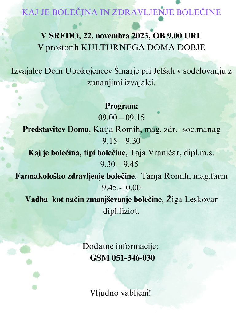 V SREDO, 22. novembra 2023, OB 9.00 URI.