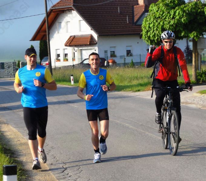 Skozi celoten tek smo imeli podporo spremljevalnih vozil, ki so se ustavljala na določenih postajališčih in skrbela za napitke ter okrepčila. Brez spremljevalne ekipe bi bil tek verjetno neznosen, saj smo tekli v toplem sončnem vremenu, zato se jim za njihovo pomoč in podporo v imenu vseh tekačev najlepše zahvaljujem.