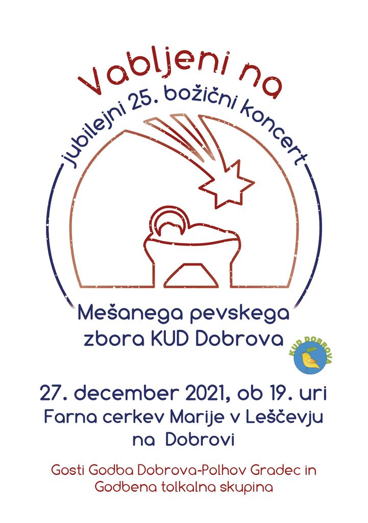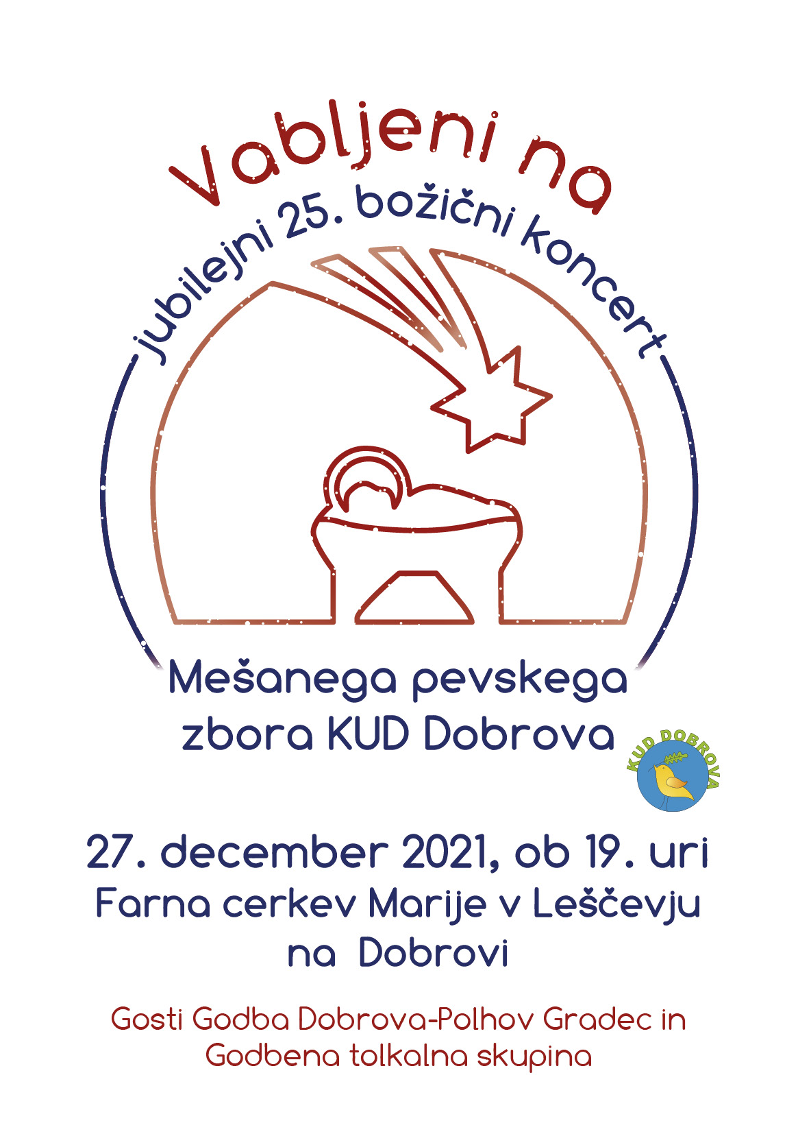 Vabljeni na jubilejni 25. BOŽIČNI KONCERT Mešanega pevskega zbora KUD Dobrova