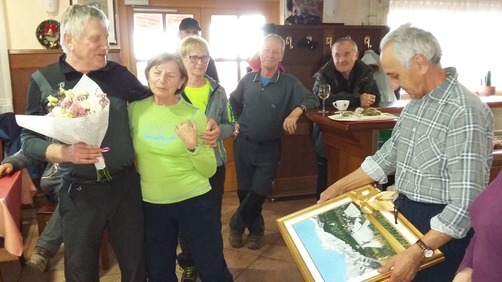 Pri nas, pohodnikih je v navadi, da se za udeležbo na stotem pohodu podeli priznanje. Na tokratnem pohodu smo presenetili Eli Zadnikar in ji podelili zasluženo priznanje za stoti pohod. Priznanje za sto pohodov je prejelo že kar lepo število pohodnikov. Franci in Milena Malovrh ter Mira Jovan pa so že lani prejeli priznanje za udeležbo na dvesto pohodih. Jubilejni pohod smo zaključili ob domači hrani in pijači, zvokih harmonike in pozavne, nekaj pohodnikov pa je kljub štiriurnemu pohodu še malo zaplesalo. Zadovoljni, čeprav rahlo utrujeni smo se odpeljali nazaj proti Dobrovi. Že na poti domov smo se seznanili z majskim pohodom na Vojsko. Kot vedno smo si tudi tokrat obljubili, da bomo do pohoda maja pridno skrbeli za svoje zdravje in se gibali, s tem pa nabirali moči za 251. pohod.