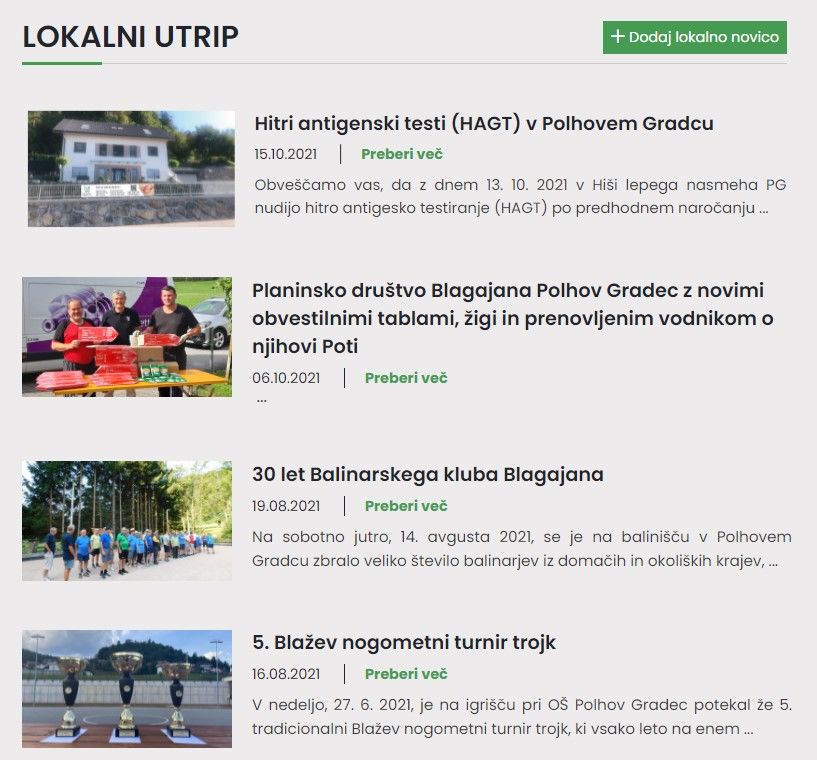 Občani, ki so predstavniki društev, ustanov, zavodov in drugih organizacij v občini Dobrova - Polhov Gradec, lahko na občinsko spletno stran www.dobrova-polhovgradec.si sami objavijo novice in dogodke, ki bi jih želeli deliti z drugimi. Najprej je potrebna registracija uporabnika, pred javno objavo novice oz. dogodka pa mora objavo potrditi še administrator spletne strani.