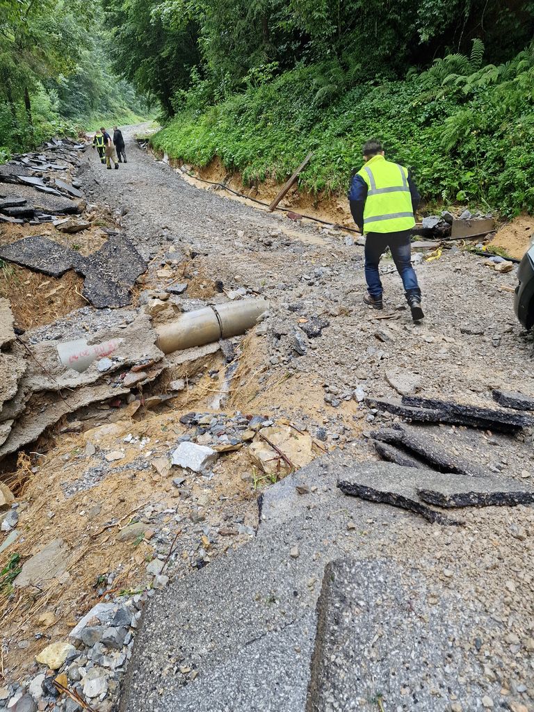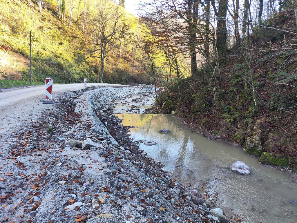 cestišče v spodnjem delu, kjer je bilo zgrajen dodaten obvod, ki bo ščitil
