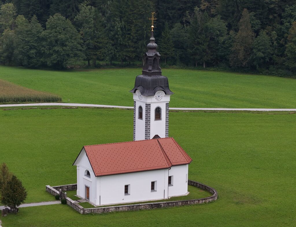 le ti dve mogočni stavbi, tudi cerkev svetih Treh kraljev v Brišah je označeno kotišče