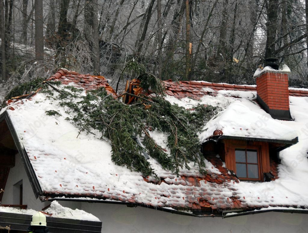 S sobote na nedeljo sta dve močnejši drevesi padli tudi na hišo v Dvoru. Eno drevo je močno poškodovalo sleme hiše, drugo pa nadstrešek oz. garažo. Drevo je padlo tudi na streho pri Glažarju, ampak k sreči le vrh drevesa, ki ni napravil vidne škode. Še nekaj objektov je bilo ogroženih z drevesi, ki pa jih zaradi lastne varnosti in nezmožnosti preusmeritve stran od objektov med podiranjem nismo podrli. K sreči so do konca kljubovala žledenju in ostala nepoškodovana.