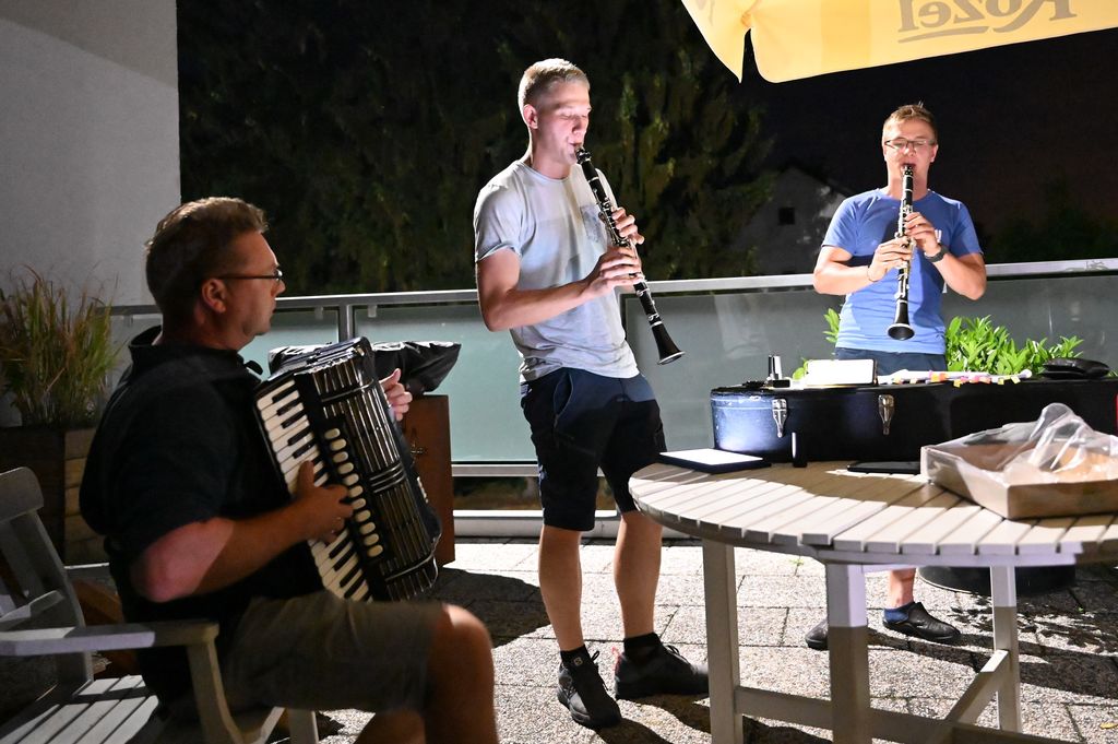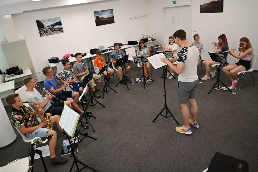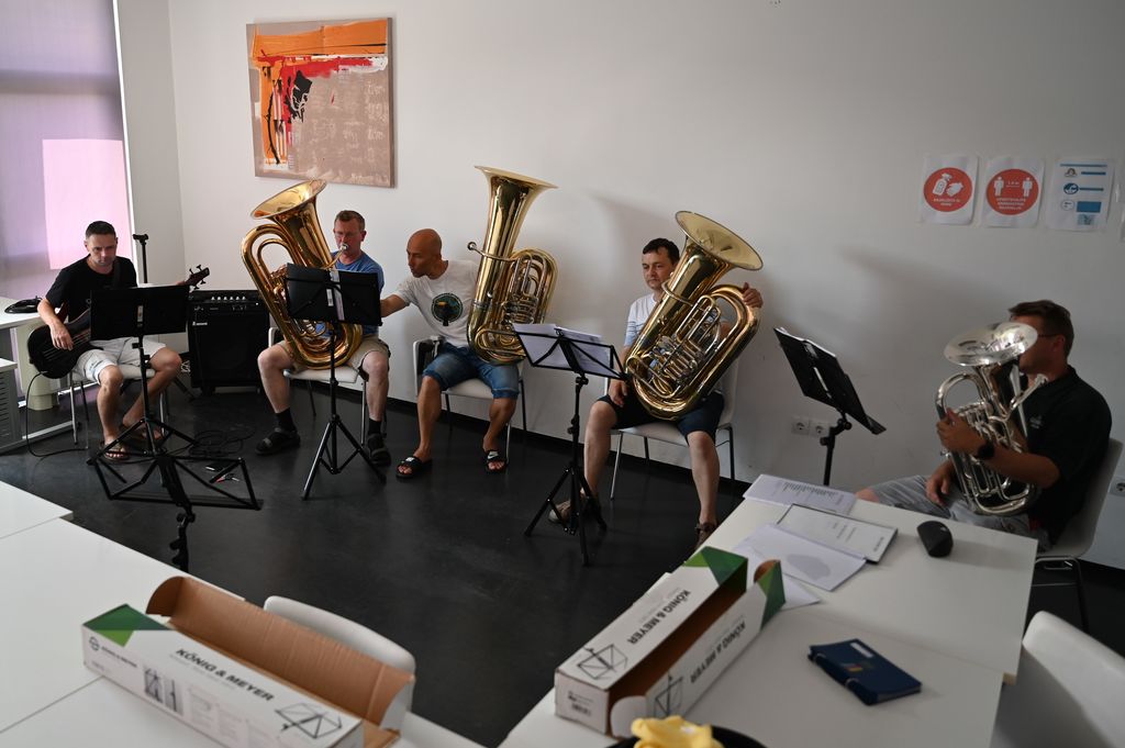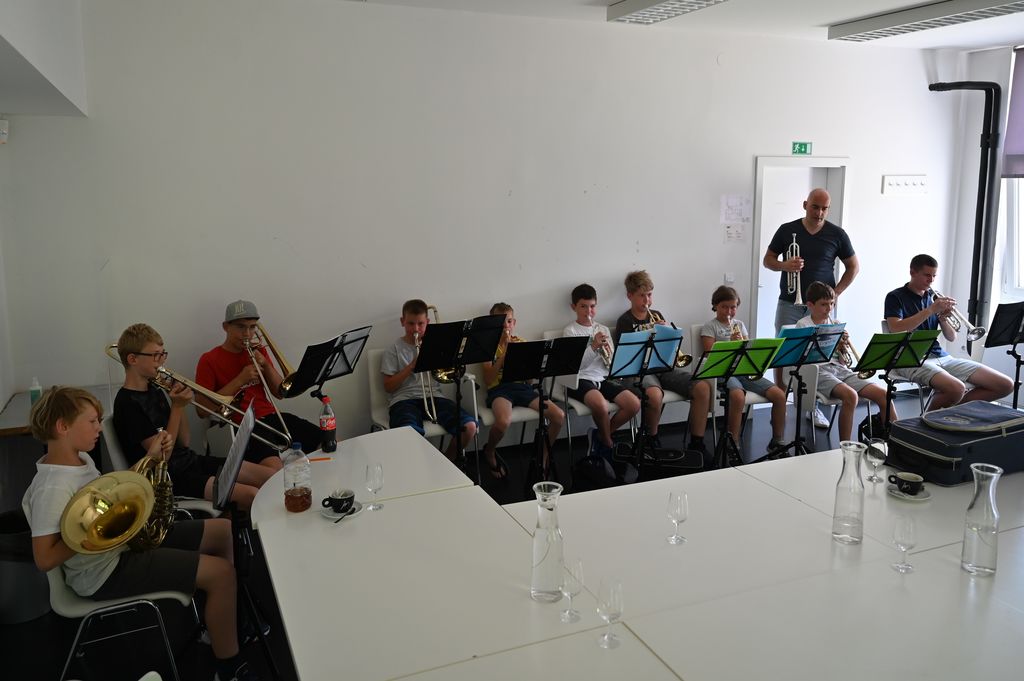 In kaj pomenijo take vaje? Vse od skrbne priprave tridnevnega urnika vaj, notnega gradiva, učiteljskega kadra, nastanitve, prehrane, prevoza instrumentov in godbenikov, … do dejanskega pričetka vaj in vodenje vikenda. Čeprav so bili godbeniki sprva malo nestrpni, kako bo šlo, se je trema hitro razbila s sekcijskimi vajami po manjših skupinah, kjer so skladbe pod vodstvom učiteljev natančno razdelali in vadili zahtevnejše predele. Filmska glasba, ki bo rdeča nit koncerta Noč godbe 2022, je praviloma izjemno lepa, a glasbeno zahtevna. V drugem dnevu se je godba potem združila in zaigrala skupaj - s tem se prične dolga pot piljenja in uigravanja celotnega sestava. A to še ni vse! V ponedeljek je sledil še učni program figurativnega korakanja, ki ga Godba Dobrova – Polhov Gradec ohranja v godbeni tradiciji. Vse to je še kako pomembno, da lahko godba odprtih rok sprejme v svoje vrste nove godbenike. Tokrat je na Godbeni tabor potovalo sedem novih godbenikov pripravnikov – trobentači, pozavnisti in oboistka. Čaka jih nekaj razburljivih in zahtevnih mesecev, ko bodo predelali verjetno največ pesmi v svoji karieri. Godbeni tabor pa ni le delo, je tudi zabava in super druženje, kar sta potrdila oba družabna večera in nedeljski obisk sosednjih term. Seveda ni šlo brez načrtovanja presenečenj za gledalce za oktobrski koncert …