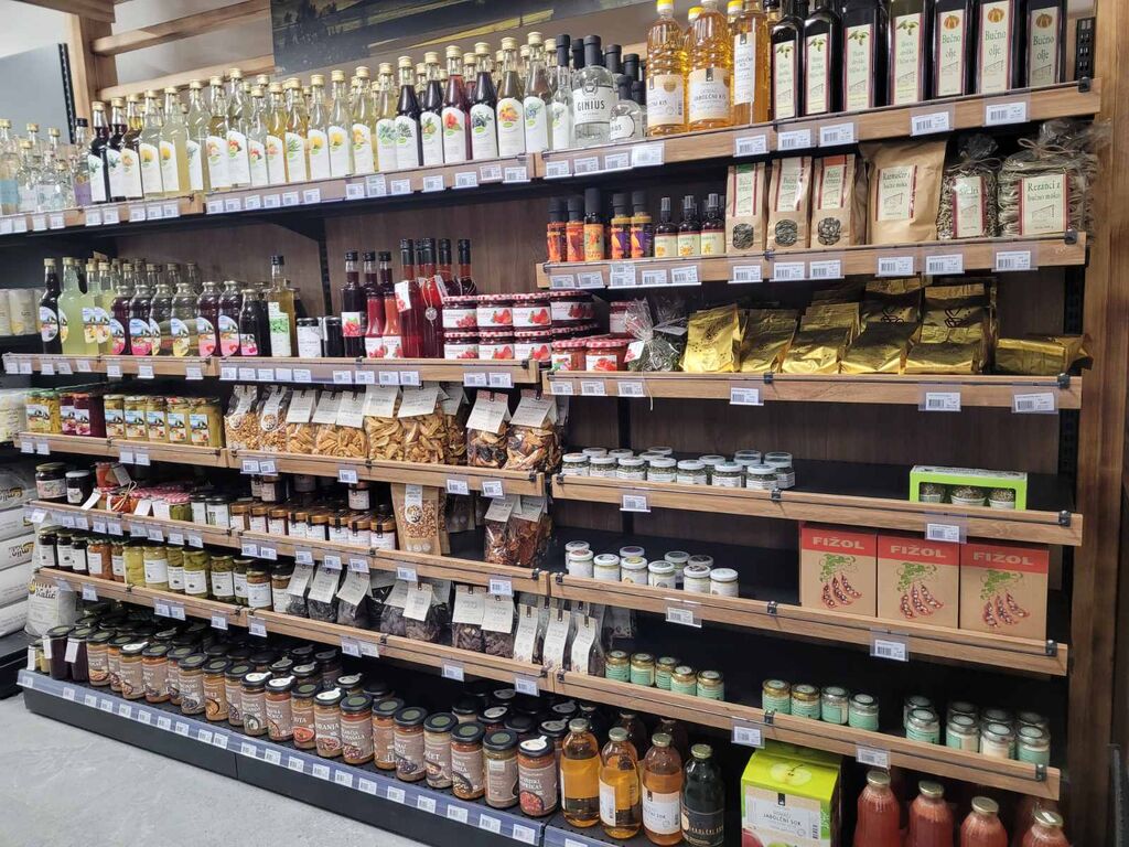 Pomemben del trgovine predstavlja domači kotiček, kjer so na voljo dobrote lokalnih kmetij in slovenskih dobaviteljev. S tem zadruga spodbuja lokalno pridelavo in potrošnikom omogoča dostop do svežih, kakovostnih domačih izdelkov. V ponudbi so med drugim sveže mleko, jajca, marmelade, kruh, sokovi, žganja, zelišča, med in drugi domači proizvodi.