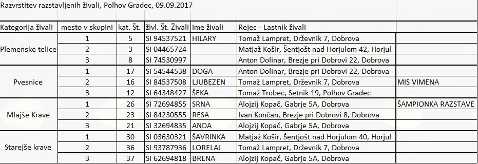 Obiskovalci, predvsem pa rejci so nestrpno pričakovali rezultate ocenjevanja krav po posameznih kategorijah – plemenske telice, prvesnice ter mlajše in starejše krave. Razglasitev rezultatov je bila tudi osrednji dogodek prireditve. Najmlajši so popestrili prireditev kot vodniki telet. Predsednik govedorejskega društva Matjaž Košir jim je za spodbudo podaril male zvončke, prisotni pa velik aplavz. Kmetje so lahko in morajo biti ponosni na svoje delo in uspehe. Organizatorji in udeleženci razstave so se odlično odrezali, prav tako pa tudi obiskovalci, ki so pokazali veliko zanimanje za dogodke, pohvalili prireditev in dali tako spodbudo kmetom, rejcem, ne nazadnje pa tudi strokovnim službam za njihovo delo.