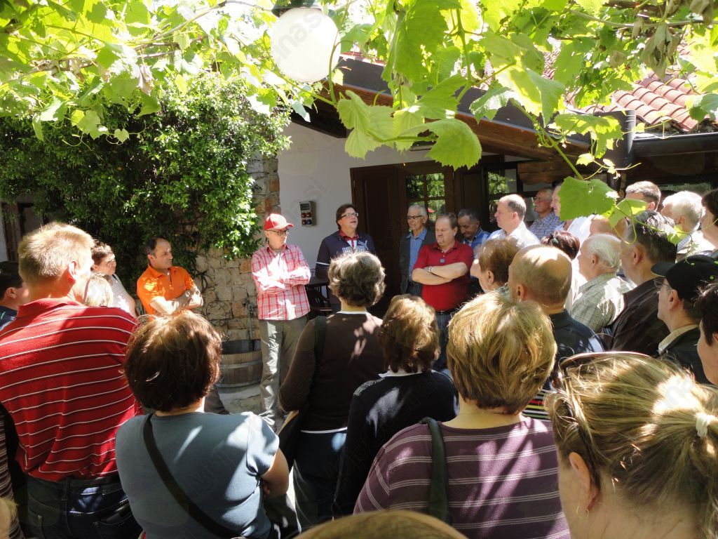 Najprej smo si ogledali živinorejsko kmetijo Vidali pri Bazovici, ki na svojih 12 hektarjih površin in 88 hektarjih v najemu obdeluje zemljo. Imajo štiri zaposlene, od tega enega sirarja, Slovenca iz Kopra, preostali so Romuni. Neto plača zaposlenih je okoli 1.400 evrov, pri čemer sirar dela denimo vsak drugi dan po osem ur in predela približno 2.000 l mleka, od tega približno 500 l dnevno pridelajo sami. Imajo 40 glav živine, od tega 22 krav molznic, število živine pa bodo v kratkem povečali na 50. Pridelujejo mehke in trde sire, mocarelo, skuto in mehke sire z dodatki, kot so kumina, bazilika in drobnjak. Lastnik kosi tako na slovenski kot italijanski strani. Košnja je samo enkrat na leto, le redko dvakrat. Njihove parcele so zelo razdrobljene, izdelke pa v 90 % prodajo doma, na kmetiji.