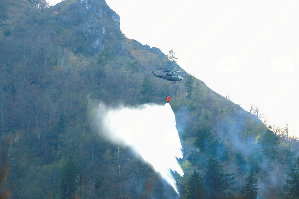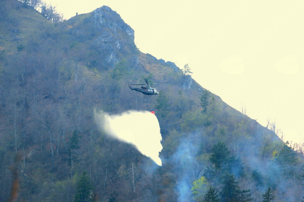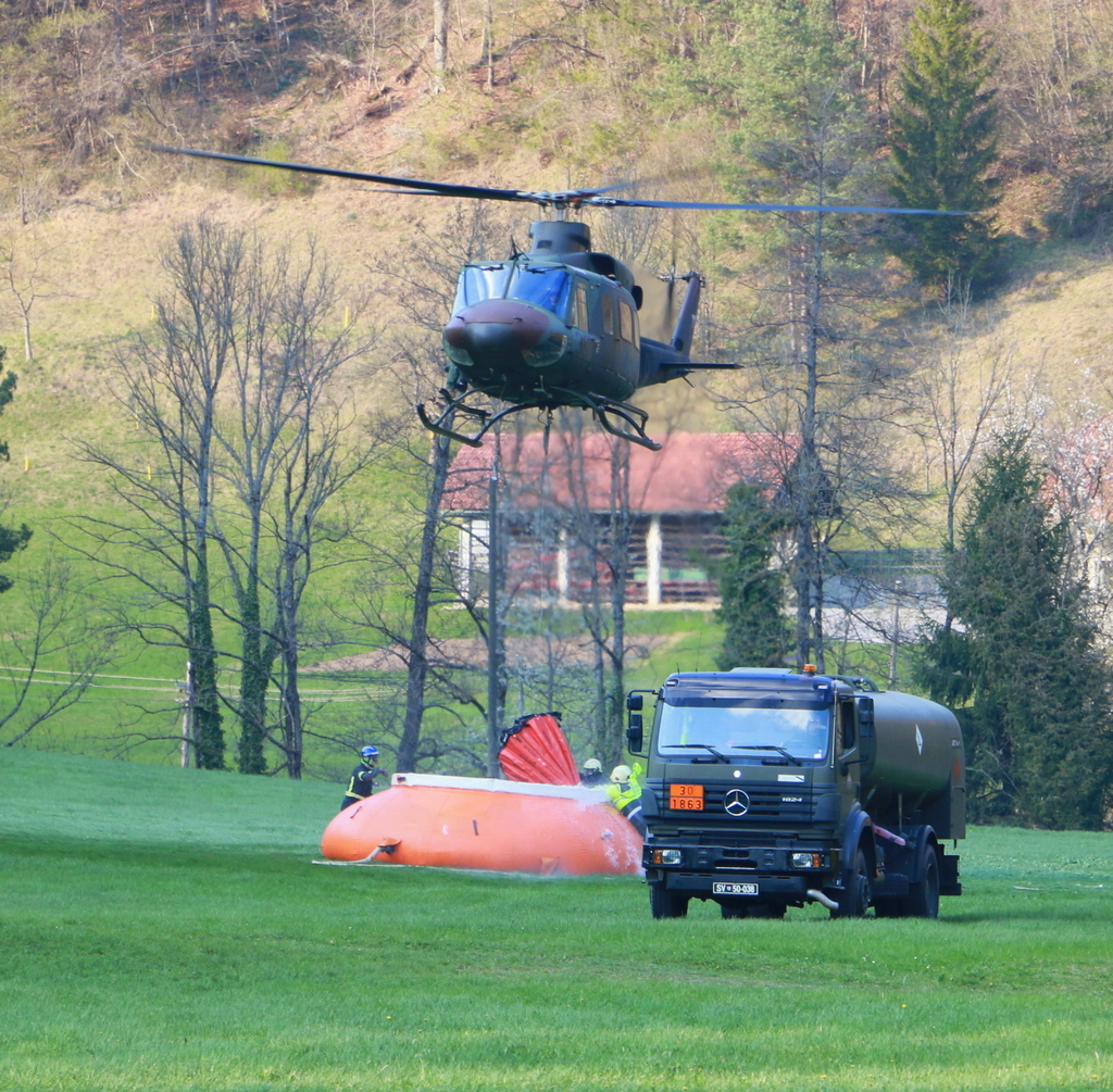Danes, tretjega aprila na prvi delovni dan, je zagorelo na težko prehodnem severnem pobočju Polhograjske gore (Sv. Lovrenc, 824 mnm), tako da je več ur vse do 18.30 ure zvečer območje preletaval vojaški helikopter z gasilno vrečo, s katero je nosil vodo iz namensko postavljenega bazena na travniku nasproti gostilne Pograjski dom in ta ciklus gašenja (zajemanje vode, vožnja, izpust vode) ponavljal vsakih deset minut. Seveda brez pomoči lokalnih prostovoljnih gasilskih društev ne bi šlo. Več informacij sledi jutri.