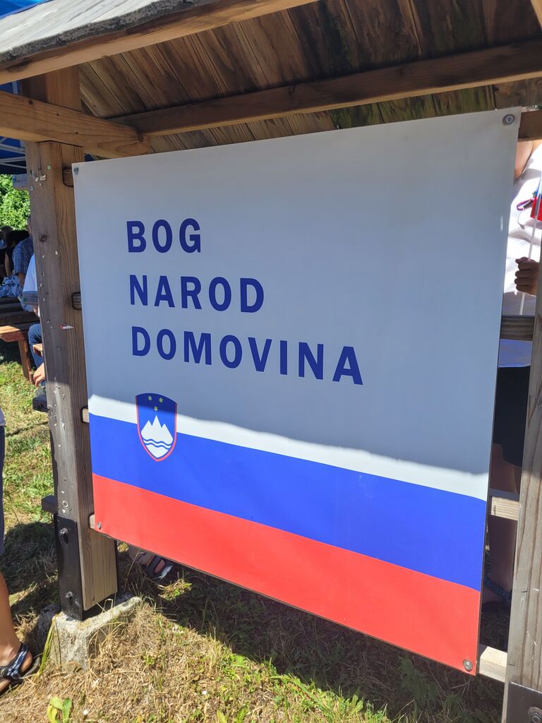 straže. Na kozolčku ob smučišču pa je ljudi pozdravljala tabla z napisom Bog narod