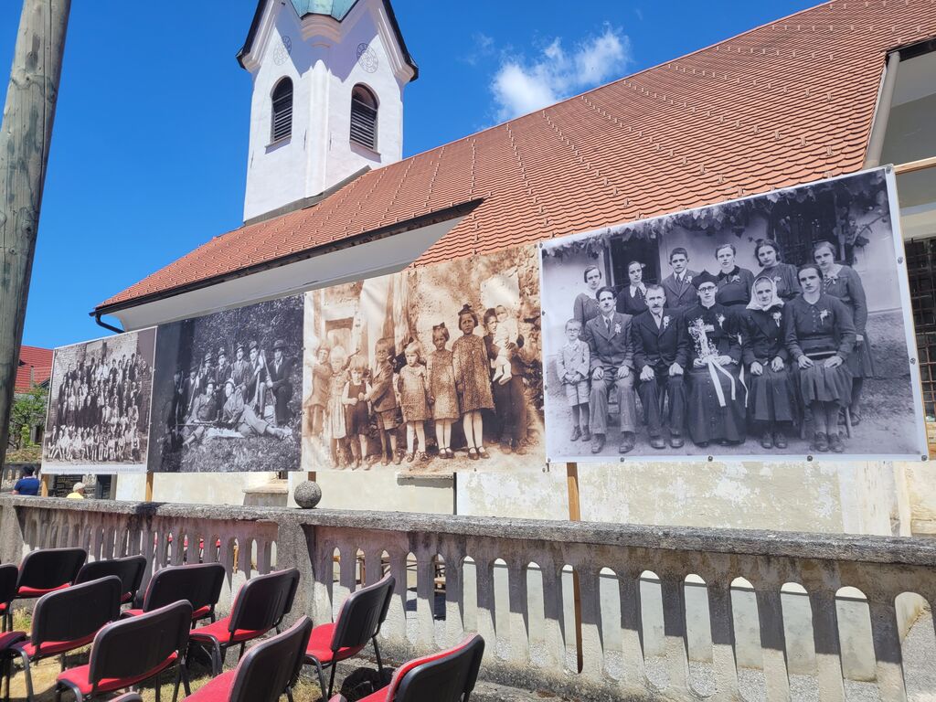 pokopališča so bile nameščene zgodovinske slike družin, vojakov in prve vaške