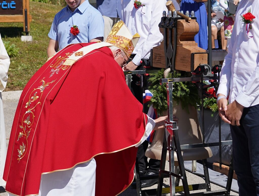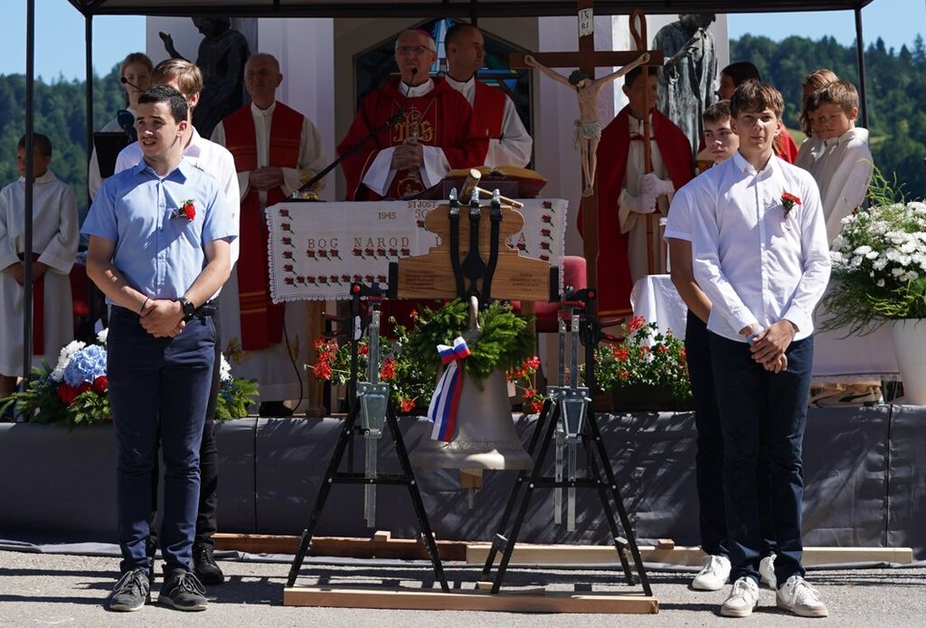 maše je blagoslovil kopijo starega zvona iz leta 1354, ki je bil izdelan v