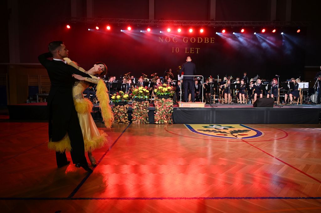 In že naslednji teden so ob 10. obletnici delovanja priredili v Športni dvorani na Dobrovi slavnostni koncert Noč godbe 2021, ki se je zaradi zagotavljanja ukrepov zgodil tokrat kar dvakrat, v petek 22. in v nedeljo 24. oktobra. Karte so se prvikrat prodajale tudi preko Eventima, vodilnega prodajalca vstopnic v Sloveniji. Program so poleg izvrstnega godbenega dela obogatili s solističnimi elementi instrumentalistov in pevcev še gostujoči posamezni plesni pari, pevke in operna pevca. Obakrat je bilo slovesno, veselo, pestro, začinjeno s komentarji Jureta Seška, bogato, kar se tiče glasbenih zvrsti in zahtevnih skladb, skratka nadvse zanimivo. Letos še posebej slovesno, saj so imeli vsi godbeniki in godbenice prvikrat povsem nove, prave in lične godbene uniforme. Mnogim podjetjem in posameznikom se imamo zahvaliti za tako pomemben korak. Še posebna zahvala gre mecenom godbe Damjanu Plevniku, direktorju podjetja Plevnik d.o.o., Matevžu Trojarju, direktorju podjetja Trol d.o.o., Janezu Jarcu, direktorju podjetja JA-NE d.o.o. in Janezu Šenku, direktorju podjetja Šenk pohištvo d.o.o. Za vsa leta sodelovanja in podpore so se njim, mnogim posameznikom, občini in društvom godbeniki zahvalili že na akademiji ob odprtju razstave. Sicer pa so bili vsi trije dogodki – razstava in oba koncerta – en sam praznik vseh sodelujočih. V petek se je praznovalo tudi z odlično torto in in s pogostitvijo godbenikov in vseh povabljenih gostov po koncertu. Kako imenitno je bilo, so si lahko tisti, ki jim ni bilo dano priti na koncert, pogledali preko prenosa v živo.