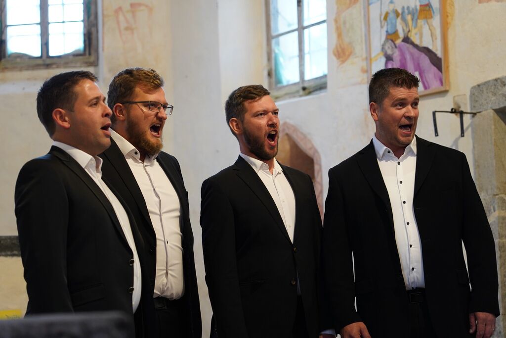 potekal koncert Slovenskega vokalnega kvarteta. Štirje pevci – Matej Avbelj,