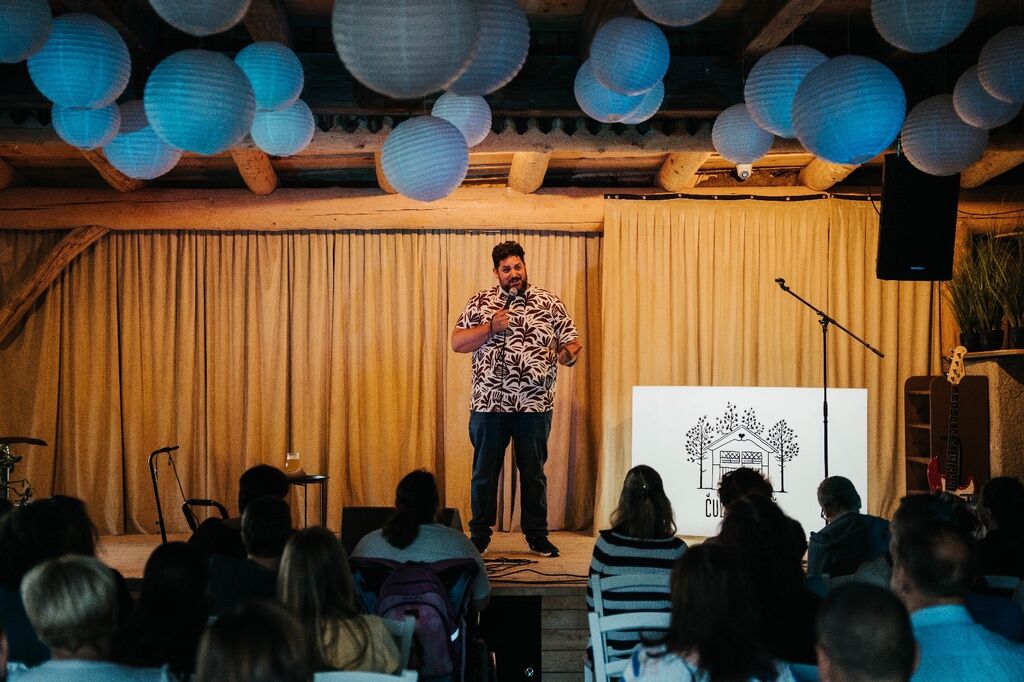 Na Čudnem ranču v Gabrju je 17. julija potekal stand-up večer, ki je privabil številne ljubitelje smeha. Kot predskupina je nastopila zasedba Laura & Company, v kateri nastopajo Vili Koprivec, Lija Koprivec, Laura Cankar in Matija Čuden, ter poskrbela za uvod v večer s sproščenimi glasbenimi ritmi. Glavni del programa sta oblikovala uveljavljena slovenska stand-up komika Lucija Ćirović in Boštjan Gorenc - Pižama. Lucija Ćirović, ena od pionirk slovenske stand-up komedije, igralka, dramska pedagoginja, lutkarica in ventrilokvistka, je občinstvo nasmejala tudi s svojo znamenito lutko Coco, ki je s hudomušnimi pripombami popestrila njen nastop. Boštjan Gorenc - Pižama je večer nadaljeval s svojim prepoznavnim humorjem, polnim besednih iger in opazk o absurdnosti sodobnega življenja ter starševstva. Njegove izkušnje iz preteklih predstav in knjižnih uspešnic so se odražale v suverenem in dinamičnem nastopu, ki je večer zaključil v enako smehu polnem vzdušju, kot se je začel.