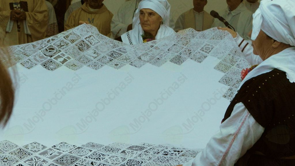Lansko jesen je s Primorskega prišlo vabilo, naj se pridružimo pobudi gospe Rožane Špeh k ustvarjanju oltarnega prta, izdelka simbolnega pomena. Pet klekljaric iz našega društva je sklekljalo čipke iz snežno bele bombažne niti v velikosti 10 x 10 cm (Milka Bokal, Angelca Cankar, Anica Kucler, Helena Maček in Marijanca Yartz). Klekljarice in klekljarji iz vse Slovenije so na zbirno mesto v Luciji do predpisanega roka poslali več kot 500 čipk. Po oceni je bilo za klekljanje in šivanje prta skupaj potrebnih več kot 5.000 ur. Čipke je v prt všila gospa Tanja Oblak.