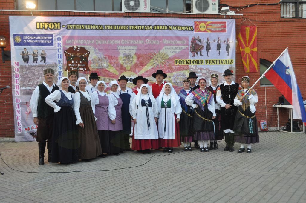 Da bi se še malo bolj ogreli, smo se avgusta odpravili na mednarodni folklorni festival v Ohrid. Tokrat smo potovali z letalom. Kot zanimivost lahko povemo, da nas je »peljala« prva slovenska kapitanka, ki se je izšolala v Sloveniji: Alja Berčič Ivanuš. Potovanje je potekalo zelo prijetno, za kar se zahvaljujemo celotnemu osebju letala. Tudi s prtljago je bilo vse v redu (najbolj nas je skrbelo zaradi folklornih kostumov). In glede na čudno poletno vreme v Sloveniji (dež na dež) nas je poletje v Makedoniji presenetilo v vsej svoji vročini. Vse dni smo uživali v soncu, pri 30 stopinjah. Nastopi so bili ob 20. uri, zunaj, na prostem, kar je bilo idealno. Zvečer ni bilo vroče, pihal je veter z morja, in vzdušje je bilo odlično. Na sprevodu skozi mesto nas je ustavilo in ogovorilo veliko ljudi. Nekaj je bilo tudi Slovencev na dopustu, preostali pa so bili domačini. In vsak je imel drugačno zgodbo o Sloveniji: nekdo ima sorodnike od tu, veliko jih je pri nas služilo vojsko, nekateri so opravljali različna dela v slovenskih podjetjih in podobno. Če povemo na splošno: vsi imajo lepe spomine na Slovenijo in so z nami radi spregovorili nekaj besed. Vedno pa so bili prisotni tudi spomini na »drago Jugoslavijo«. Tako je bilo na večernih nastopih kar nekaj obiskovalcev, ki so si prišli ogledat slovenske plese. Med njimi tudi naša vodička Tanja, ki nam je med ogledi povedala več kot 20 vicev, pa se nobenega več ne spomnimo ... Vemo le, da so bili zelo smešni ...