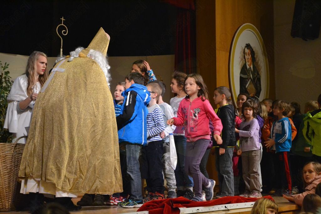 Njegovega obiska so se razveselili tudi otroci v polni dvorani kulturnega doma, ki so ga nestrpno pričakovali. Še preden je prisluhnil otrokom, pa je nekaj vprašanj zastavil domačemu župniku Bogdanu Oražmu in županu Francu Setnikarju, ki sta bolj ali manj uspešno odgovarjala. Za njima pa so oder napolnili otroci, ki so nekoliko prestrašeni pristopili do Miklavža in angelcev. Za svojo pridnost so otroci prejeli darila, nato pa veseli odšli na svoje domove, kjer so po tradiciji nastavili peharje – kdo ve, morda se je dobri mož ustavil tudi tam.