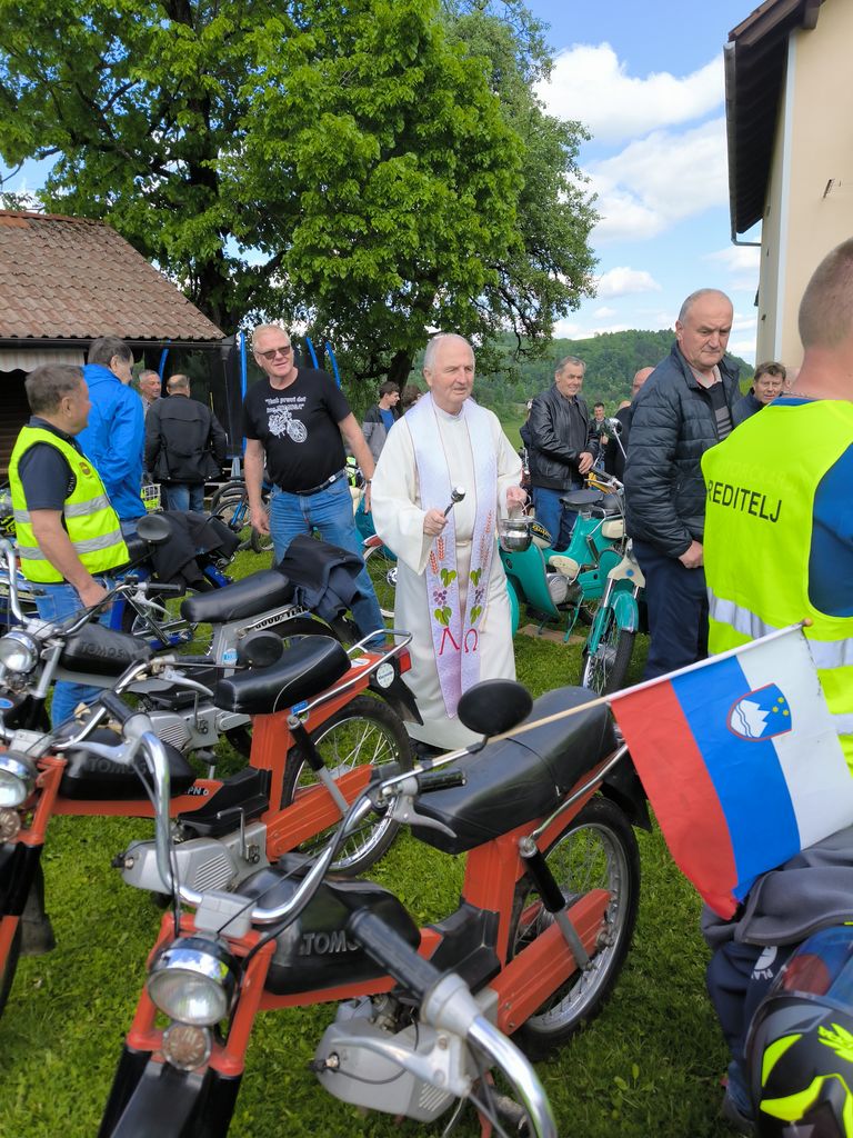 Šentjošt, 10. maj – Pred gasilskim domom v Šentjoštu je potekal že 15. tradicionalni blagoslov motorjev in motoristov, ki ga organizirajo šentjoški motorčkarji. Dogodek, ki iz leta v leto privablja več motorističnih navdušencev, je letos privabil ogromno ljudi, ki so s seboj pripeljali kar 105 motornih vozil –   mopedov in drugih dvo-, tri- in štirikolesnikov. Od vozil so prevladovali seveda mopedi (Tomos), bilo jih je skoraj 50, veliko pa je bilo tudi kros motorjev – kar 17.