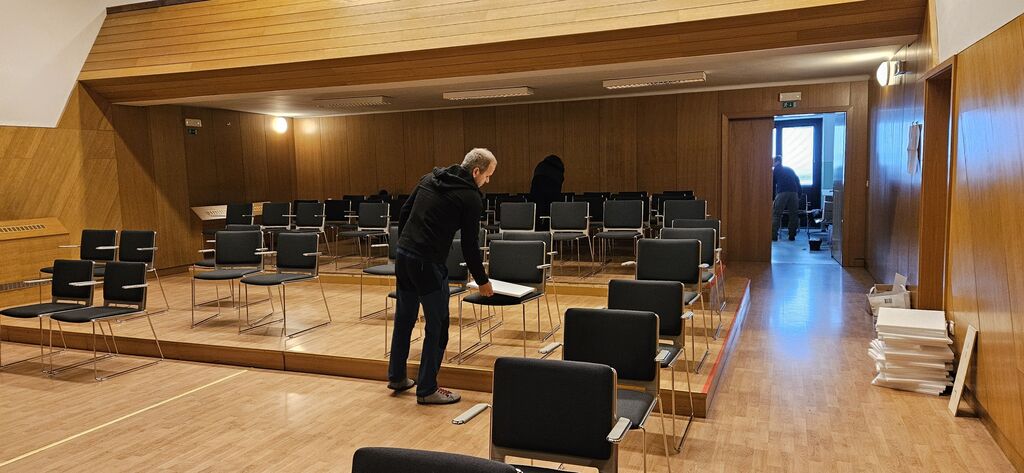 Prenova sedišč in odra v dvorani v Polhovem Gradcu