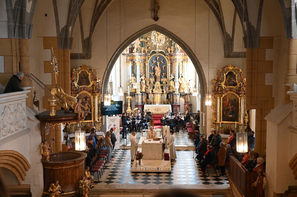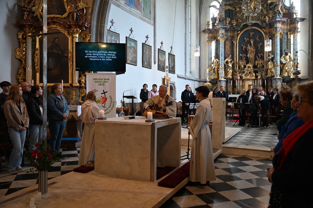 pri dvojezični (nemško-slovenski) sveti maši. Že med mašo so nas župljani