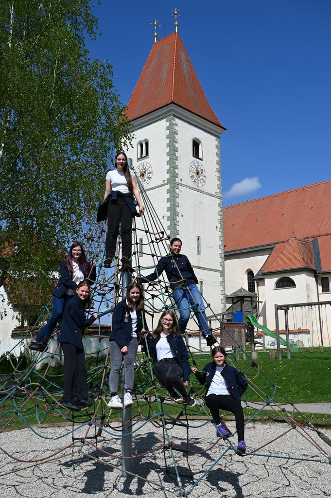 dve skupini – mlajši so odšli v trampolin park, starejši na sprehod po Celovcu.