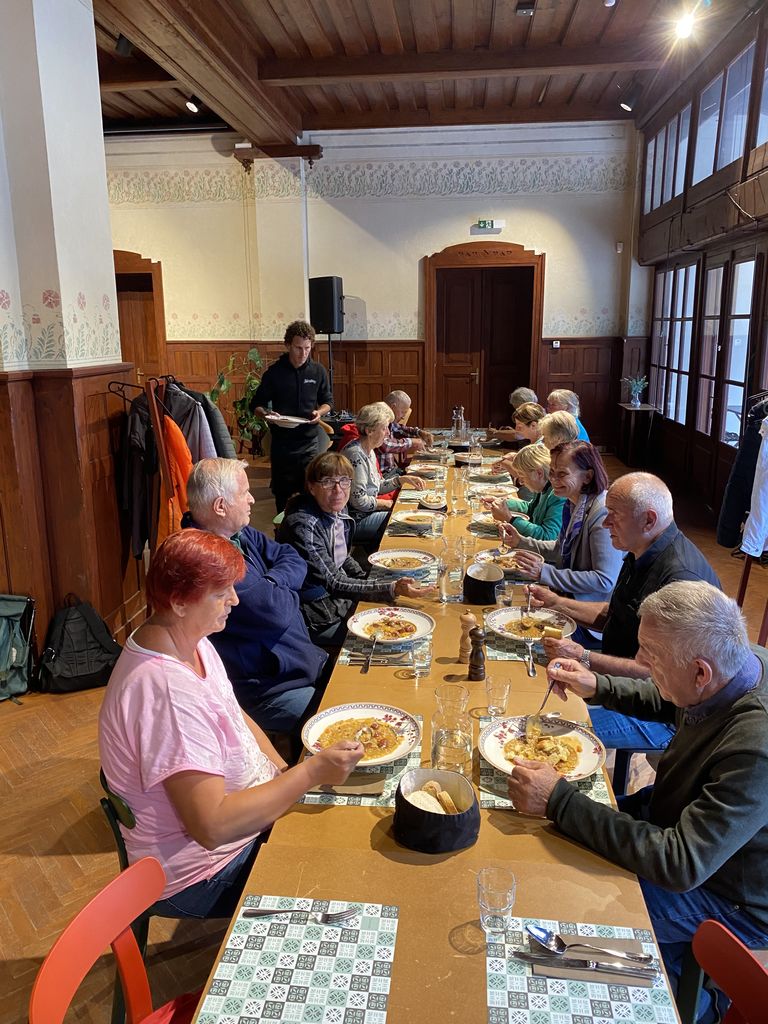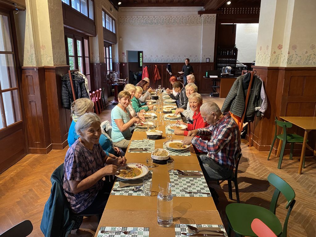 Četrtek je na Dobrovi dan za nordijsko hojo in tako smo se v četrtek, 26. 9. 2024, odpravili "mladi po srcu" v Ljubljano z LPP 56. Na izlet v okviru nordijske hoje smo povabili naše društveno aktivne člane in kljub mnogim obveznostim ter slabemu vremenu, se nas je zbralo 16 in na koncu smo z veseljem ugotavljali, kako zanimivo in poučno doživetje je obiskati razstavo v Cekinovem gradu. Na ogled razstave "Marjan Ciglič, Mojster za vse čase" v Cekinovem gradu smo odšli, čeprav je bilo vreme deževno. Pred Moderno galerijo se nam je pridružilo še nekaj članov in pod okriljem dežnikov smo začeli naš sprehod po Tivoliju. Kljub rahlemu dežju je bil sprehod po Tivoliju prijeten. Najprej smo se ustavili v kavarni v čolnarni ob jezeru, kjer so nas pozdravili beli labodi in še sivi labodji mladiči. Po čaju ali kavici smo se odpravili proti Tivolskemu gradu in naprej do Cekinovega gradu, kjer domuje Muzej novejše in sodobne zgodovine Slovenije. Ob 11. uri nas je pričakala avtorica razstave dr. Monika Močnik, ki nas je popeljala skozi zgodbo fotografa Mojstra Marjana Cigliča. Njeno strokovno vodenje je bilo izjemno zanimivo in zgodovinsko poučno. Voden ogled razstave nas je tako prevzel, da smo se začeli ob fotografijah tudi sami spominjati časov naše mladosti in smo tako dodali marsikatero osebno izkušnjo. Dve šolski uri sta kar prehitro minili. S hvaležnostjo smo se poslovili in odšli na naš naslednji cilj. V prijaznem okolju Švicarije nas je že čakala lepo pogrnjena skupna miza in z veselje smo pojedli okusen ljubljanski ričet s kranjsko klobaso. Po okusnem toplem obroku smo še malo posedeli in poklepetali. Proti avtobusu smo se odpravili po Jakopičevem sprehajališču. Tam smo si lahko sproti ogledali zanimivo fotografsko razstavo na velikih panojih pod gradom Tivoli: "Ohranjamo naravo sredi mesta". In kot so žarele lepe slike ob sprehajališču, tako se je nebo počasi jasnilo in dež je ponehal. Po lepem dopoldnevu, polnem lepih srečanj in doživetij, smo se poslovili z jasno željo, da bomo še naprej skupaj iskali in doživljali lepote narave in umetnosti.