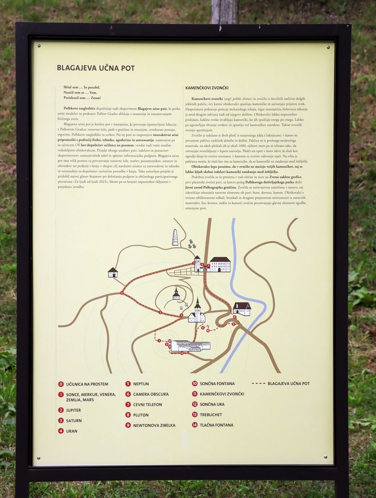 V letu 2023 smo bili občani prvič pozvani, da sodelujemo v participativnem proračunu, torej da sami predlagamo izvedbo projektov za razvoj lokalnega okolja. Junija ste občani izmed vseh 14-ih prejetih predlogov, ki so ustrezali zahtevam razpisa, izglasovali 3 projekte za izvedbo, in sicer v vsaki krajevni skupnosti po enega, z izjemo krajevne skupnosti Šentjošt, za katero ni bil podan noben predlog. Izbrani so bili trije projekti: zvočna izolacija v avli OŠ Dobrova (KS Dobrova), obnova fasade Doma krajanov Črni Vrh (KS Črni Vrh) in izgradnja učnih elementov na Blagajevi doživljajski učni poti (KS Polhov Gradec), katere del je tudi najbolj vidni tribok nasproti graščine. Pa tudi ostale  na celotni doživljajski poti bodo razporejeni interaktivni učni pripomočki s področja fizike, tehnike, zgodovine in astronomije, ki bodo namenjeni osnovnošolcem kot učilnica na prostem, pa tudi drugim obiskovalcem. Projekt je večfazen, že lani so postavili klopico »kamenčkovi zvončki« na Polhkovem razgledišču, spomladi tudi cevni telefon in sončno uro, septembra pa Newtonovo zibelko pri postaji in tribok. Projekt obsega tudi usmerjevalne table in spletno informacijsko podporo. Idejni oče projekta je Marko Jankovec: »Za projekt sem se odločil, ker sem želel s poučnimi eksperimenti dopolniti idejo o zunanji učilnici, za katero so že lani v Osnovni šoli Polhov Gradec zbirali sredstva na dobrodelnem koncertu. S tem projektom sem želel šoli pomagati, da lahko na interaktiven in zanimiv način spodbudi in pritegne učence k večjem zanimanju za tehniko in znanost, učenci pa lahko z učitelji skupaj dobijo odlične iztočnice za seminarske in raziskovalne naloge,« Za projekt učnih elementov je Občina namenila 10.000 €.