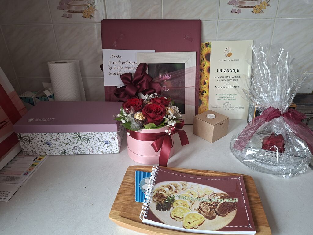 Na podelitvi sem prejela plaketo, broško in srebrnik, pa tudi ogromno šopkov in daril. Vsaka kmetica, ki je bila pred mano izbrana za kmetico leta, mi je prinesla darilo – nekaj malega iz svoje kmetije ali kraja. Od kmečkih žena sem dobila predpasnik in rožo. Kasneje so me prišle obiskat tudi članice društva, pa tudi Irena Ule, predsednica kmetic Slovenije, da smo skupaj malo predebatirale, kako naprej. Pred kratkim smo imele še sestanek v gasilskem domu – zdaj se pripravljamo na nove izzive.