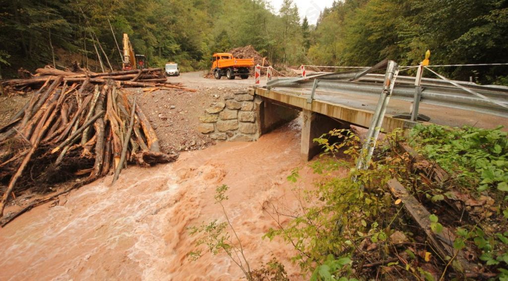 Sobota, 13. september. Občinski vzdrževalci so bili na terenu že ob 8. uri, a so lahko le nemočno zrli v glasno in blatno vodno gmoto ter s trakovi zavarovali tisto luknjo, kjer je še dan prej stal zasilni most: »Ob zadnjih poplavah pred enim mesecem smo naredili dva predora iz 14 betonskih cevi premera en meter, pa so ostale samo še štiri in nekaj razbitih ostankov ... Kje so preostale, že v Ljubljani?« Pretok je bil preprosto večji od predvidenih odprtin, čez katere so nasuli pesek in utrdili makadamsko cestišče ob lokaciji, kjer je nekoč stal betonski most ... Svoje so naredili debla in štori, ki jih je prineslo z naraslim tokom in so svojo kinetično energijo spremenili v rušilni oven, ki je podrl zasilno mostišče.