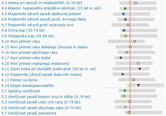 Nacionalni inštitut za javno zdravje (NIJZ) je na svoji spletni strani objavil posodobljene podatke o zdravju prebivalcev posameznih slovenskih občin. Z objavljanjem aktualnih informacij, ki so na dosegu vsem prebivalcem Slovenije, poskušajo spodbuditi zdrav način življenja in na lokalnem nivoju odpraviti dejavnike tveganja za zdravje ter preprečiti širjenje bolezni. NIJZ tako vsakoletno opravi pregled ključnih kazalnikov zdravja in zdravstvenega stanja v statistični regiji oz. občini v primerjavi s slovenskim povprečjem. Kazalniki o zdravju prikazujejo stanje na petih ravneh: demografski razvoj občine, dejavniki tveganja za zdravje, preventiva (ta raven poroča o usmerjenosti občanov v preprečevanje bolezni in ohranjanje zdravja), zdravstveno stanje, ki govori o oceni zdravja in prisotnosti bolezni, in umrljivost.