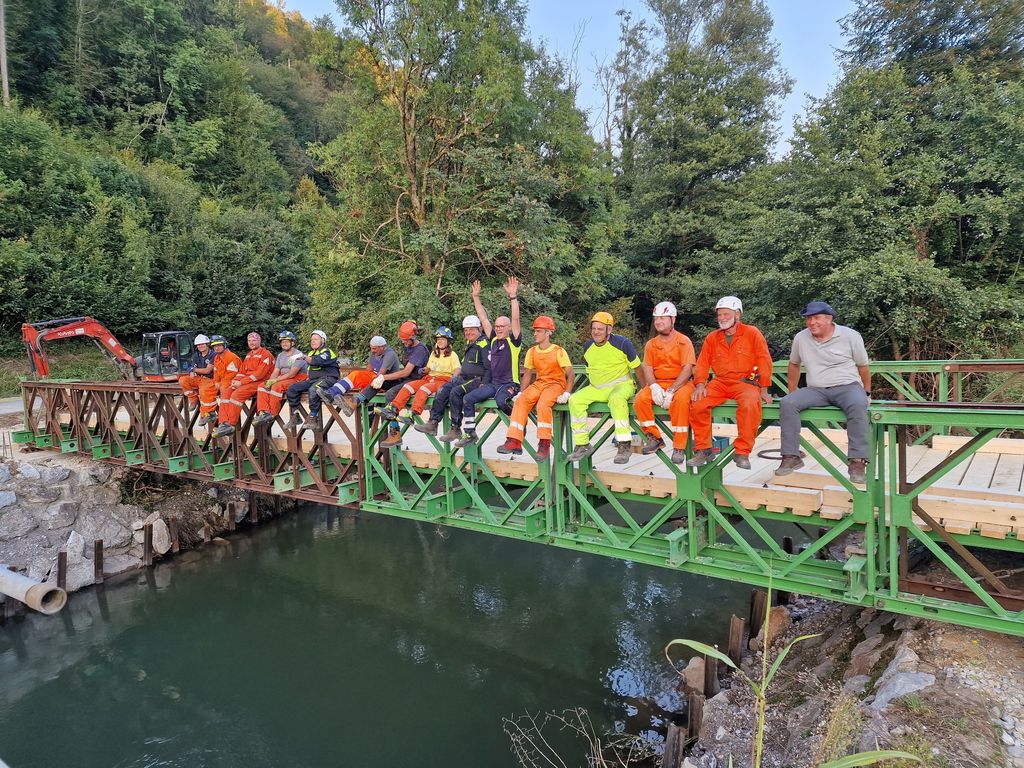 Z ekipo prostovoljcev italijanske civilne zaščite, v sodelovanju z ekipo URSZR in v koordinaciji ekipe naše občine, je bil v nekaj tednih postavljen novi montažni most, ki je tako Hruševo ponovno povezal z dostopom do glavne ceste.