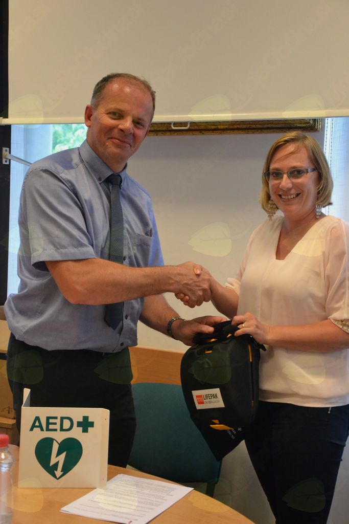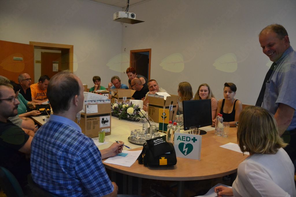 Avtomatski defibrilator, ki je dodatno opremljen še s potrošnim materialom (2 para elektrod, maska za umetno dihanje, britvice, škarjice) in dodatnimi elektrodami za odrasle in otroke ter označbo lokacije, je bil predan v prave roke, saj so gasilci tisti, ki so vselej prvi klicani na pomoč, poleg tega pa tudi najustrezneje usposobljeni za tovrstno nudenje prve pomoči, je dejal župan ob predaji kompletov predstavnikom gasilskih društev. Skupaj s predstavnikom lekarne sta jim zaželela koristno uporabo predvsem v izobraževalne namene in čim redkeje v resnih situacijah. Gasilci so bili ob tej priložnosti tudi izvedeli, da bo občina jeseni v vseh štirih krajevnih skupnostih ponudila možnost brezplačnega izobraževanja o pravilni uporabi defibrilatorja, saj je to ključno za uspešen razplet v primeru njegove uporabe. Navzoči predstavniki gasilskih društev so se zahvalili za naprave, ki so si jih dolgo želeli, a je vselej zmanjkalo denarja. Sedaj jih imajo, morajo pa poskrbeti za njihovo namestitev, dokup ogrevane omarice, če bo AED zunaj, ter usposobljene ljudi, ki jih ne bo strah jih uporabiti.