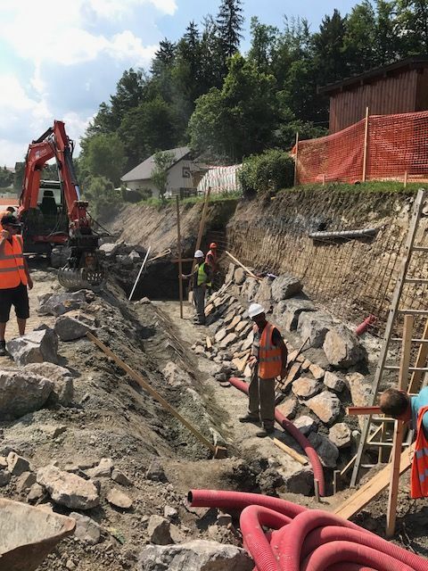 Dela na odseku državne ceste skozi Srednjo vas pri Polhovem Gradcu potekajo po terminskem načrtu. Vidni so obrisi prvega para avtobusnih izogibališč na spodnjem koncu vasi, položeni pa so tudi že prvi metri fekalne kanalizacije. Maja je izvajalec dokončno prestavil potok na spodnjem koncu obravnavanega odseka. Trenutno se ureja struga potoka na nasprotni strani, postavljeni so že prvi cestni robniki avtobusnih postajališč, prav tako se je začelo tudi z gradnjo fekalne kanalizacije. Ker je predmetna kanalizacija le manjši del širšega še nezgrajenega fekalnega omrežja, ki poleg Srednje vasi obsega še kanalizacijo v Dolenji Vasi, Dvoru in spodnjem delu Babne Gore, priključevanje nanjo žal ne bo mogoče vse do izgradnje čistilne naprave v Dolenji vasi, katere gradnja je načrtovana leta 2020. O nadaljevanju del v Srednji vasi vas bomo ponovno obvestili sredi poletja. S prihodom vročega, sončnega, predvsem pa sušnega obdobja leta je ožje območje ob gradbišču izpostavljeno večjim emisijam prahu. Izvajalec se po svojih najboljših močeh trudi s škropljenjem vode po gradbišču te emisije zmanjšati. Občina Dobrova - Polhov Gradec ob tej priložnosti prosi krajane Srednje vasi za strpnost. Hvala.