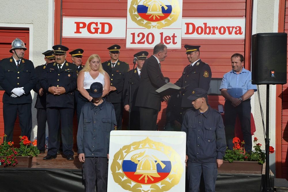 Potem ko je Otorepec predstavil zgodovino društva, je zbrane nagovoril predsednik regije Ljubljana 1 Franc Bradeško. Zahvalil se je gasilcem in krajanom, da se gasilska dejavnost na Dobrovi kljub številnim vojnam in nevšečnostim ohranja. Dejal je, da je Gasilska zveza Slovenije ponosna, da ima v toliko krajih gasilce, ki z neverjetno voljo odgovorno opravljajo svoje delo. Ob koncu je domačim gasilcem čestital in zaželel, da jim da jubilej novega zagona za naprej. Župan Franc Setnikar je med drugim povedal, da so gasilci tisti, ki vselej ob neljubih dogodkih opravijo največje in glavno delo, tako kot se je to ponovno izkazalo v primeru požara v Kemisu. Zaželel jim je, naj še naprej dobro, vestno in odgovorno opravljajo svoje poslanstvo ter lepo praznujejo; gasilcem PGD Dobrova je v imenu sveta Občine Dobrova - Polhov Gradec izročil občinsko priznanje. Po končanem uradnem delu se je dogajanje izpred gasilskega doma preselilo k šoli. Vsi, zbrani v paradi in ostali navzoči, so bili prijazno vabljeni na veliko vrtno veselico, kjer so za jedačo in pijačo skrbeli domači gasilci, člani ansambla Modrijani pa za žur do jutranjih ur.