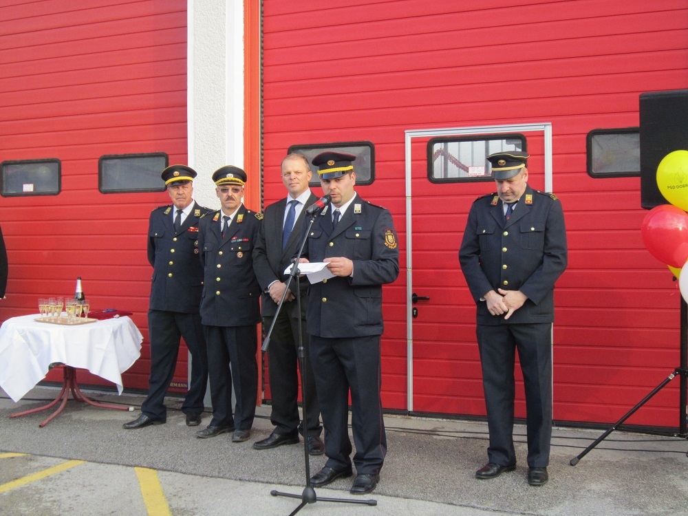 Poveljnik Gasilske zveze Dolomiti Filip Božnar je pozdravil zbrane in društvu čestital za novo pridobitev. Povedal je, da so novo vozilo kupili premišljeno in bo služilo mnogim naslednjim generacijam, zato tudi na vlaganje v izobraževanje mladih ne smejo pozabiti. Prisotne je nagovoril tudi župan Franc Setnikar ter gasilcem PGD Dobrova čestital za novo vozilo ter jim zaželel, naj jim čim pogosteje služi na vajah in izobraževanjih ter vse redkeje na intervencijah. Ob koncu se je vsem gasilcem zahvalil za delo, ki ga na področju gasilske službe v občini opravljajo. Sledil je še protokolarni del – uradna predaja ključa šoferju novega gasilskega vozila ter prerez traku, ki sta ga slovesno prerezala župan in poveljnik PGD Dobrova. Da bodo poti in prevoženi kilometri zares varni, je gasilcem zaželel tudi dobrovski župnik Alojzij Golob, ki je vozilo še blagoslovil.
