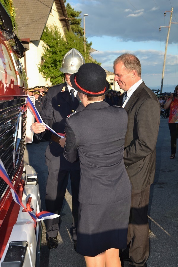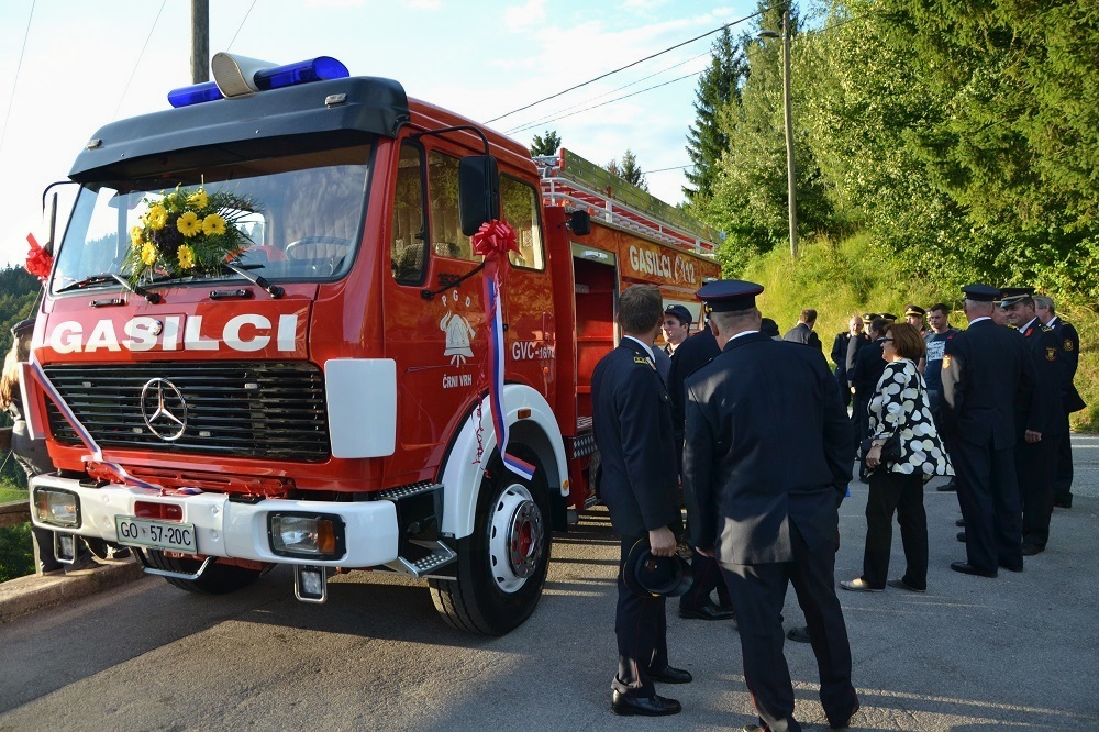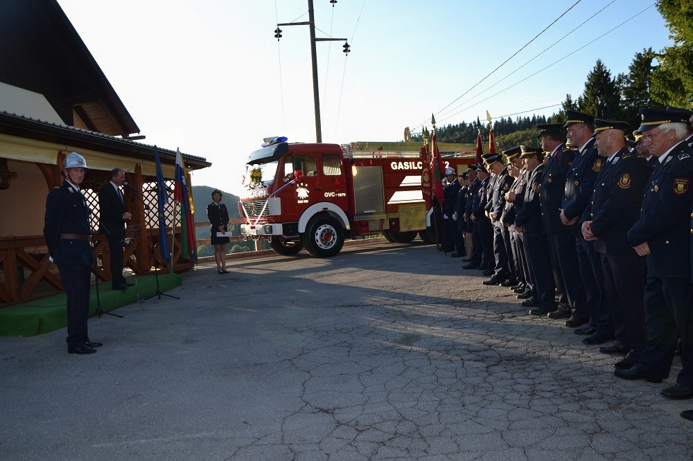 Nagovorom je sledila glasbena drobtinica, tej pa podelitev zahval članom društva, ki so v obnovo gasilskega vozila vložili največ prostovoljnih ur. Skromno pozornost so iz rok predsednice prejeli Matej Buh, Bernard Kožuh, Jože Kožuh, David Kožuh, Jure Osredkar, Klemen Raztresen in Robi Kožuh. Napočil je težko pričakovani trenutek – predaja vozila svojemu namenu. Slavnostni trak sta skupaj z županom Francem Setnikarjem prerezala predsednica Veronika Kržišnik in poveljnik Jože Kožuh. Ključi vozila pa so iz rok poveljnika GZ Dolomiti Filipa Božnarja romali v roke poveljnika PGD, ta pa jih je izročil vozniku Klemnu Raztresenu. Blagoslov s priprošnjo svetemu Florjanu, da bo varoval in spremljal gasilce ter gasilsko vozilo na vseh poteh, je opravil župnik Peter Nastran. Zvok motorja, prižgane utripajoče luči in gasilska sirena prenovljenega gasilskega vozila pa so simbolično naznanili zaključek uradnega dela slovesnosti.