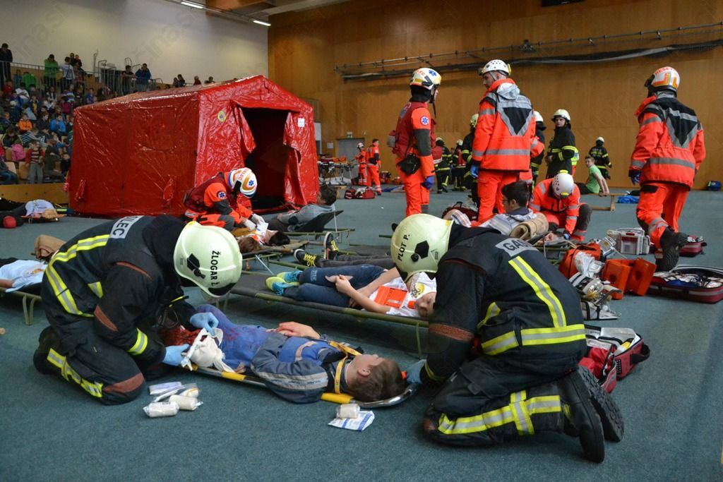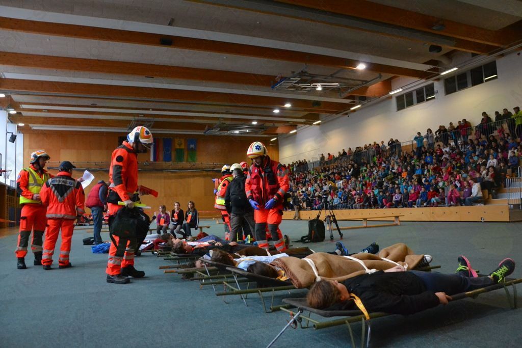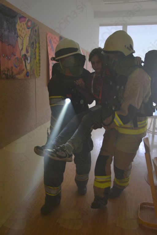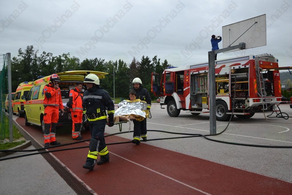 Po scenariju je v času pouka prišlo do eksplozije v kuhinji. Nastal je požar in nevaren dim se je hitro širil po hodnikih in prostorih šole. Podleglo mu je 56 ljudi – otrok, učiteljev in zaposlenih. Ravnatelj je takoj, ko je izvedel za eksplozijo, poklical 112 in sprožil alarm v vseh šolskih prostorih. Center je preko pozivnikov informacijo hitro javil vsem okoliškim prostovoljnim gasilskim društvom Gasilske zveze Dolomiti, ker pa je bila nesreča velika, je o tem obvestil še Gasilsko brigado Ljubljana ter Postajo nujne medicinske pomoči Ljubljana. Šolski alarm je dal znak, da so se vsi učenci, skupaj z učitelji, v koloni odpravili na zbirno mesto, od koder so varno spremljali potek vaje.
