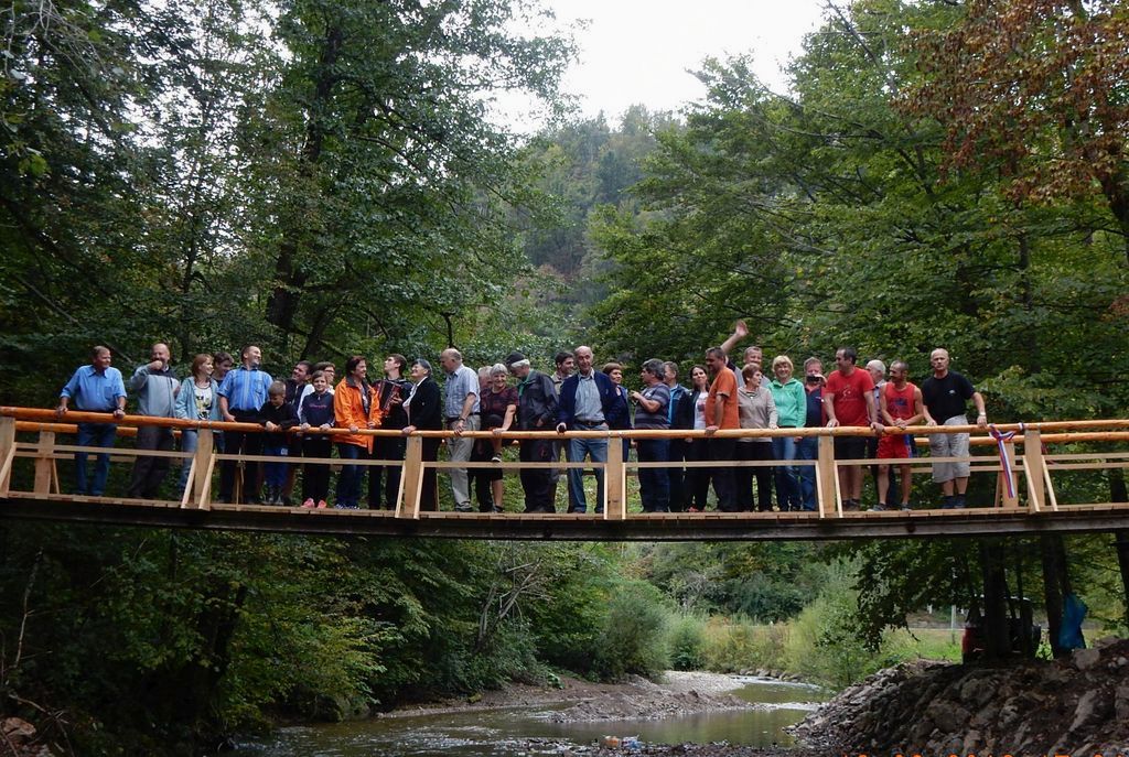 Odločili so se, da ta objekt uradno prevzamejo v uporabo. To se je zgodilo v nedeljo, 18. septembra, ob dvanajstih. Zbrali smo se vaščani Hruševe in Žirovnikovega grabna. Navzoči so bili tudi župan občine Dobrova Polhov - Gradec g. Franc Setnikar, predsednik krajevne skupnosti g. Marjan Pograjc in uradni zastopniki obeh bregov.Ž upan je slavnostno prestrigel trak na objektu in v navzočnosti vodilnih članov obeh strani izrekel tudi nekaj pohvalnih besed v smislu sloge in dobrega sodelovanja, kar se tiče ponovne izgradnje tega prepotrebnega objekta. Prav tako je lepo pozdravil ta dogodek tudi predsednik krajevne skupnosti. Obema se je Klemen Žerovnik  lepo zahvalil za udeležbo in tudi županu obudil spomin na  obljubo, da bo delno finančno podprl  izgradnjotega objekta. Po slavnostnem dogodku je sledila pogostitev s pijačo in golažem, ki ga je v visečem kotlu skuhal kuhar samouk, domačin iz Žirovnikovega grabna. Izkazale so se tudi dobre gospodinje, ki so napekle dobrote, tako da nismo bili ne lačni ne žejni. Kot donatorji so finančno podprli ta dogodek tudi nekateri bližnji obrtniki in podjetniki, za kar se jim prisrčno zahvaljujemo. Lepa gesta s strani lastnikov zemljišč je pripomogla, da so vsa ta dela nemoteno tekla.