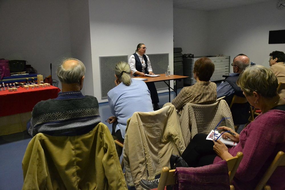 Zeliščarka Jožica Bajc Pivec je 16. novembra na 4. delavnici spregovorila o zdravih vrtninah z domačega vrta in čajnih mešanicah. Glede na to da je v Sloveniji razširjena tradicija, da ima vsaka hiša vrtiček, je v vsakem skušala najti vrtnine, začimbe, zelišča in druge zdravilne rastline ter udeležence seznaniti z njihovimi zdravilnimi močmi in učinkovinami. Dotaknila se je naravnega antibiotika – čebule, rastline mladosti – česna, krompirja, korenja, zelja, buč, koruze, rdeče pese, fižola, paprike in drugih zelenjadnic in poljščin. Spregovorila je o tem, kaj vsebujejo, na kakšen način se uporabljajo, kako pogosto se lahko uporabljajo ter postregla z mnogimi recepti iz ljudskega zdravilstva. Opomnila je, da je pri domačem in naravnem zdravilstvu in zeliščarstvu potrebno biti pozoren, da sestavine prihajajo iz neokrnjene narave, kjer so rastline neškropljene. Svetovala je, da upoštevamo naraven ciklus in se obnašamo sezonsko – takrat, ko se stvar pojavi v naravi, takrat jo potrebuje tudi telo. Poudarila je, da je vse zdravilne rastline in njihove pripravke treba uporabljati v majhnih količinah in preudarno, saj so lahko zaradi pretiravanja kontra učinkoviti oziroma celo strupeni. Ob koncu je čas namenila čajnim mešanicam in nasvetom, s katerimi pripravki se soočiti in zoperstaviti aktualnim prehladnim obolenjem ter povečati odpornost.