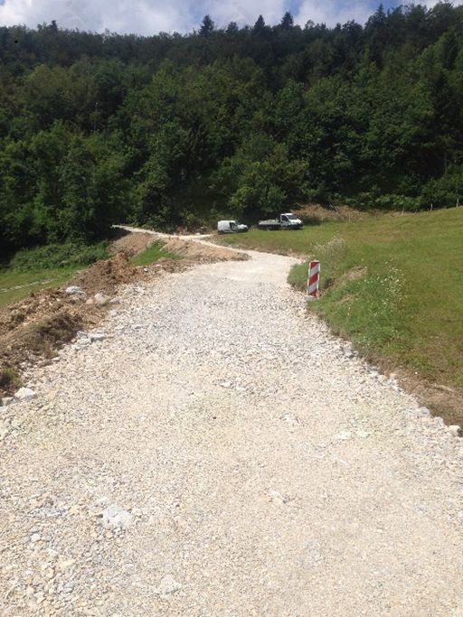 15. 7. 2014 so zabrneli gradbeni stroji na odseku treh cest, ki se med seboj povezujejo in so strnjene v eno gradbišče. Izvajajo se razširitev ceste, drenaža, odvodnjavanje in zamenjava tamponske podlage, tako bo celoten odsek v dolžini 2140 metrov po koncu zemeljskih del asfaltiran. Pogodbena vrednost investicije je 286.458,96 EUR in oba domača pogodbena izvajalca, KE-Sabina Kreft, s. p., in Trobec Andrej, s. p., zagotavljata, da bodo vsa dela končana že septembra, pred pogodbenim rokom, ki je 15. 10. 2014.